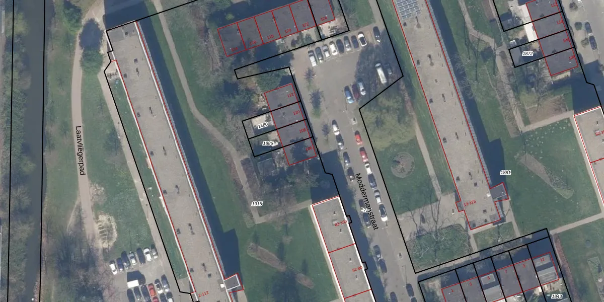 Het perceel waarop Moddermanstraat 106 staat heeft een oppervlakte van 7997 m². Dit is een zeer groot perceel. De perceeloppervlakte wordt geregistreerd door het Kadaster. Gedetailleerde informatie over de maten van dit perceel kunt u vinden in het rapport Kadastrale kaart met maatvoering van Moddermanstraat 106.
