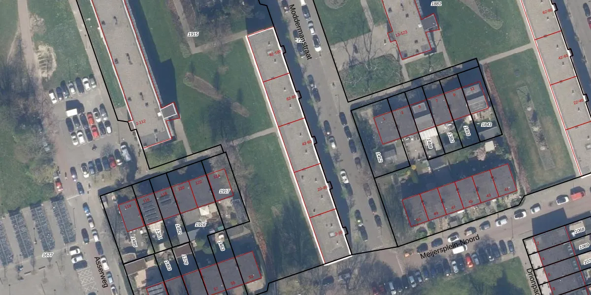 Het perceel waarop Moddermanstraat 50 staat heeft een oppervlakte van 7997 m². Dit is een zeer groot perceel. De perceeloppervlakte wordt geregistreerd door het Kadaster. Gedetailleerde informatie over de maten van dit perceel kunt u vinden in het rapport Kadastrale kaart met maatvoering van Moddermanstraat 50.