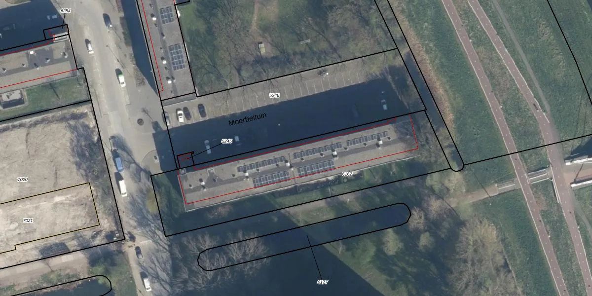 Het perceel waarop Moerbeituin 69 staat heeft een oppervlakte van 2059 m². Dit is een zeer groot perceel. De perceeloppervlakte wordt geregistreerd door het Kadaster. Gedetailleerde informatie over de maten van dit perceel kunt u vinden in het rapport Kadastrale kaart met maatvoering van Moerbeituin 69.