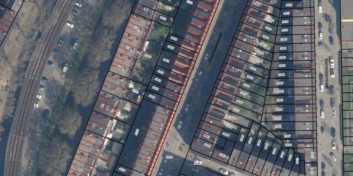 Het perceel waarop Moerkerkestraat 107-B staat heeft een oppervlakte van 100 m². Dit is een middelgroot perceel. De perceeloppervlakte wordt geregistreerd door het Kadaster. Gedetailleerde informatie over de maten van dit perceel kunt u vinden in het rapport Kadastrale kaart met maatvoering van Moerkerkestraat 107-B.