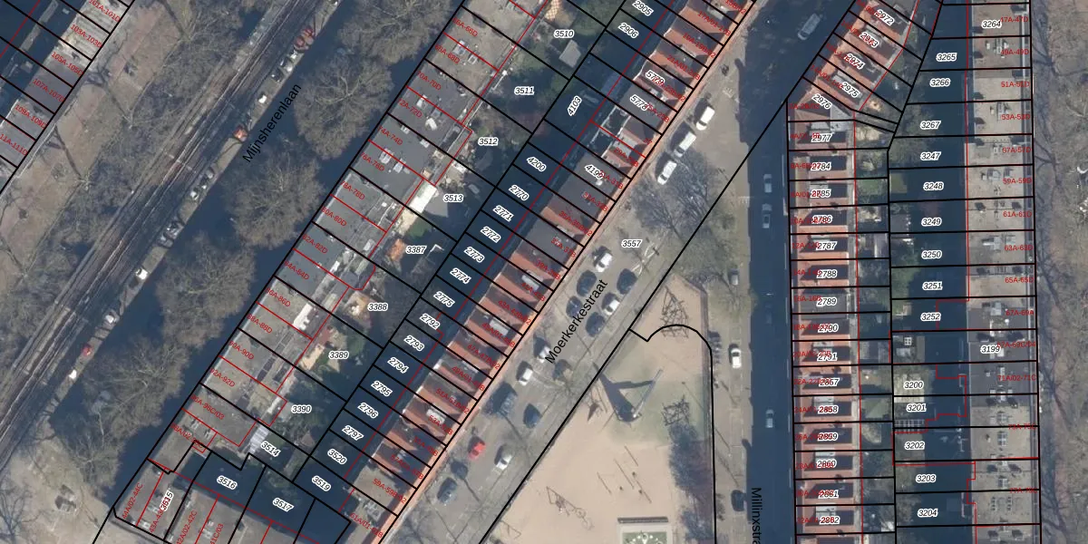 Het perceel waarop Moerkerkestraat 39-B staat heeft een oppervlakte van 100 m². Dit is een middelgroot perceel. De perceeloppervlakte wordt geregistreerd door het Kadaster. Gedetailleerde informatie over de maten van dit perceel kunt u vinden in het rapport Kadastrale kaart met maatvoering van Moerkerkestraat 39-B.