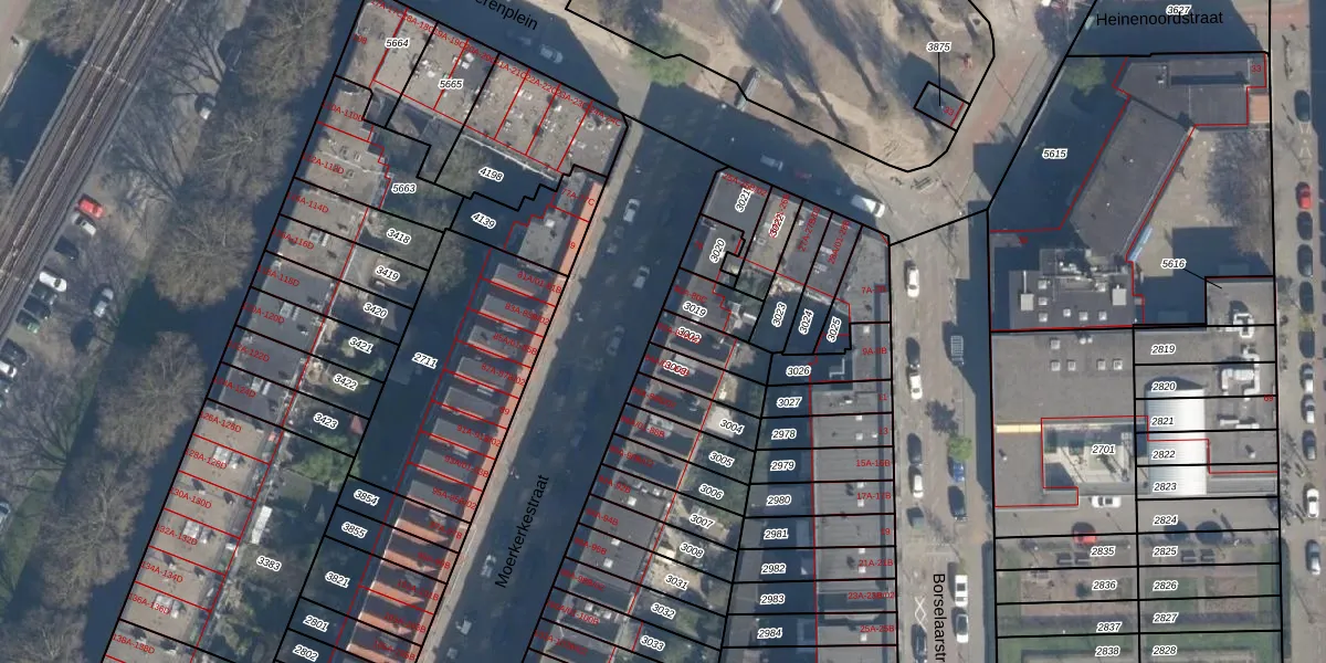 Moerkerkestraat 82-A is gelegen op kadastraal perceel CLS00G3002. Deze kadastrale aanduiding is uniek en wordt gebruikt door het Kadaster om eigendomsrechten en andere zakelijke rechten vast te leggen. Het perceel maakt onderdeel uit van de kadastrale gemeente Charlois.