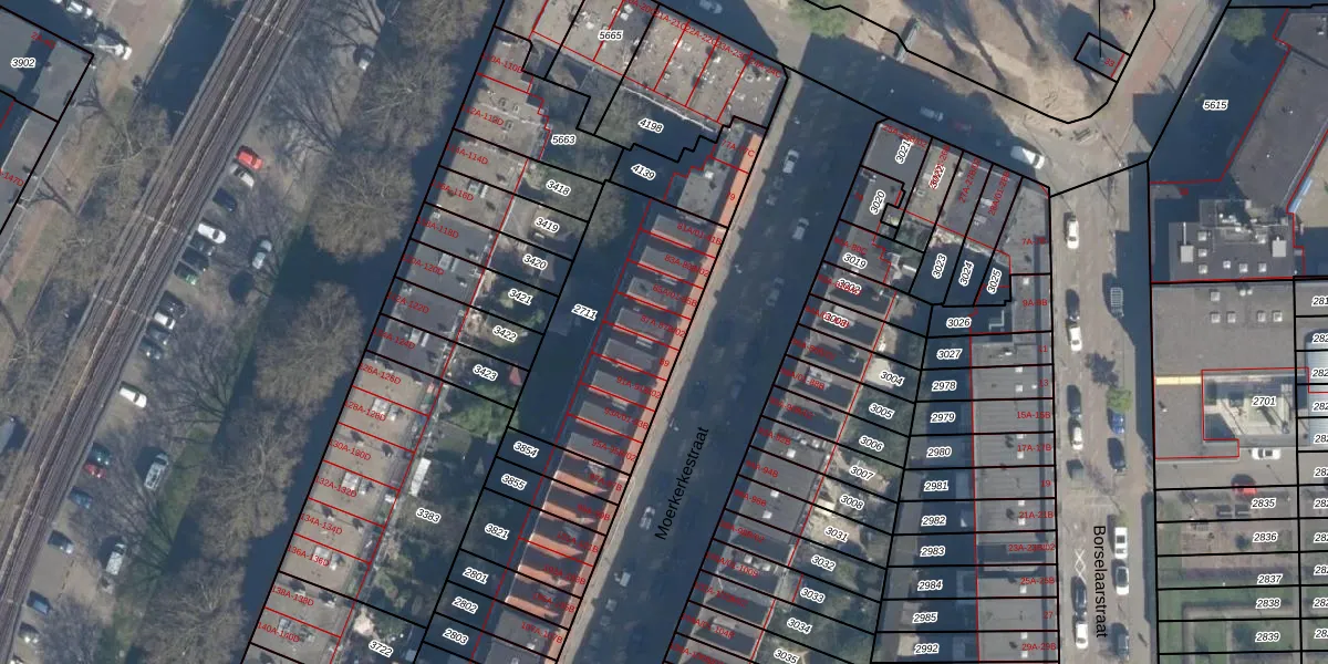 Moerkerkestraat 87-A is gelegen op kadastraal perceel CLS00G2711. Deze kadastrale aanduiding is uniek en wordt gebruikt door het Kadaster om eigendomsrechten en andere zakelijke rechten vast te leggen. Het perceel maakt onderdeel uit van de kadastrale gemeente Charlois.