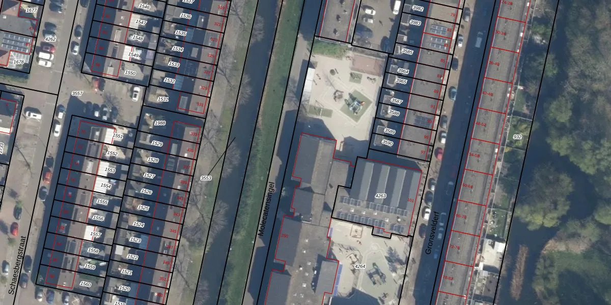 Het perceel waarop Molecatensingel 250 staat heeft een oppervlakte van 3797 m². Dit is een zeer groot perceel. De perceeloppervlakte wordt geregistreerd door het Kadaster. Gedetailleerde informatie over de maten van dit perceel kunt u vinden in het rapport Kadastrale kaart met maatvoering van Molecatensingel 250.