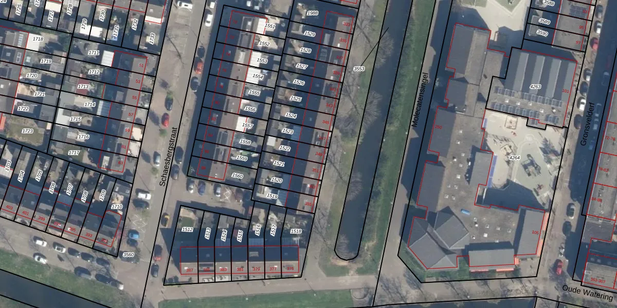 Het perceel waarop Molecatensingel 349 staat heeft een oppervlakte van 114 m². Dit is een middelgroot perceel. De perceeloppervlakte wordt geregistreerd door het Kadaster. Gedetailleerde informatie over de maten van dit perceel kunt u vinden in het rapport Kadastrale kaart met maatvoering van Molecatensingel 349.