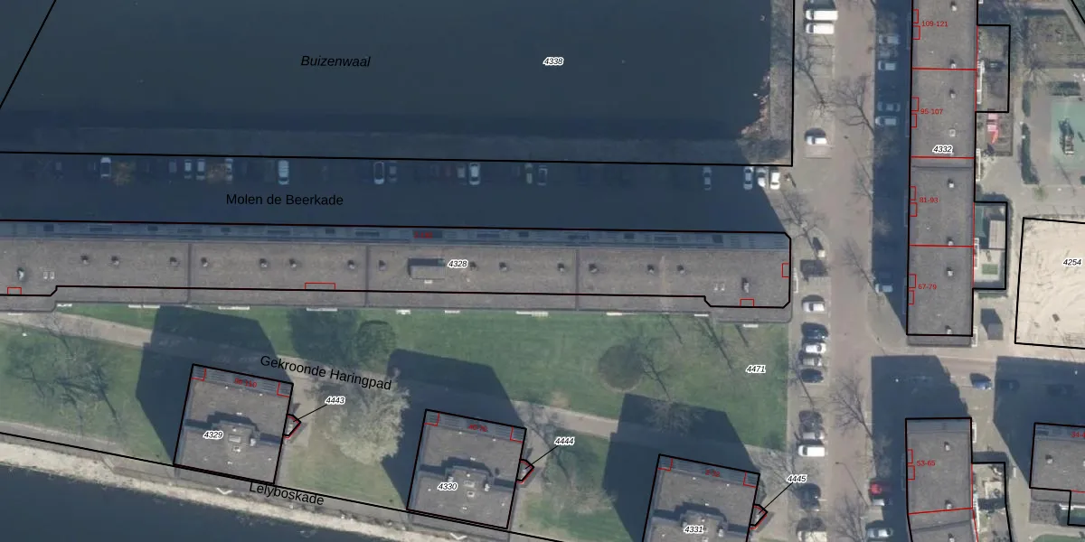 Het perceel waarop het adres ligt is DHV00-A-4328. De afkorting 'DHV00' staat voor kadastrale gemeente Delfshaven. De gemiddelde perceeloppervlakte in de kadastrale gemeente Delfshaven is 628,53 m². Dit perceel is met zijn 1860 m² dus groter dan gemiddeld. De grootste perceeloppervlakte in de kadastrale gemeente is 22,2 ha. De kleinste oppervlakte bedraagt 0 m². Op het perceel zijn 96 adressen aanwezig. De huidige grenzen van het perceel zijn digitaal in de Basisregistratie Kadaster (BRK) geregistreerd op 01-11-2007.