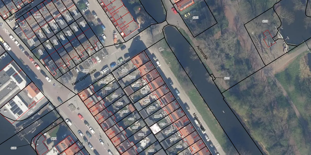 Gebruik de zoekbalk of klik op een perceel voor informatie over de adressen binnen dit perceel.