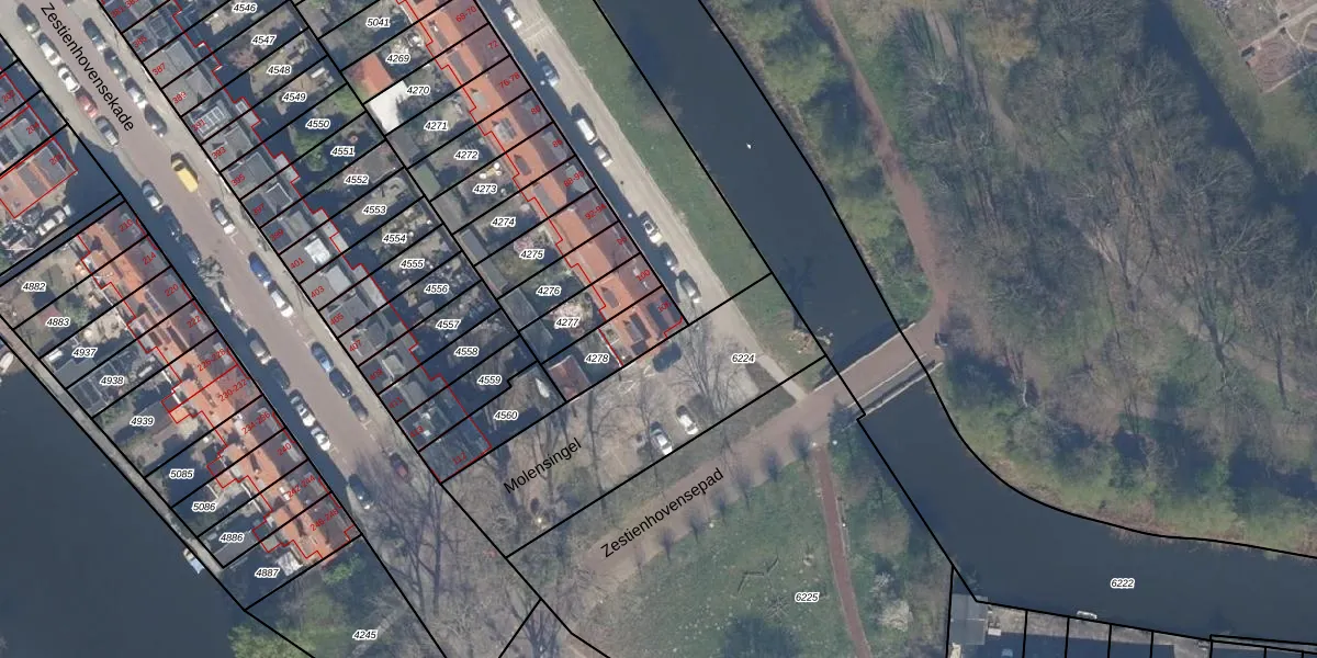 Molensingel 106 is gelegen op kadastraal perceel OVS00B4278. Deze kadastrale aanduiding is uniek en wordt gebruikt door het Kadaster om eigendomsrechten en andere zakelijke rechten vast te leggen. Het perceel maakt onderdeel uit van de kadastrale gemeente Overschie.