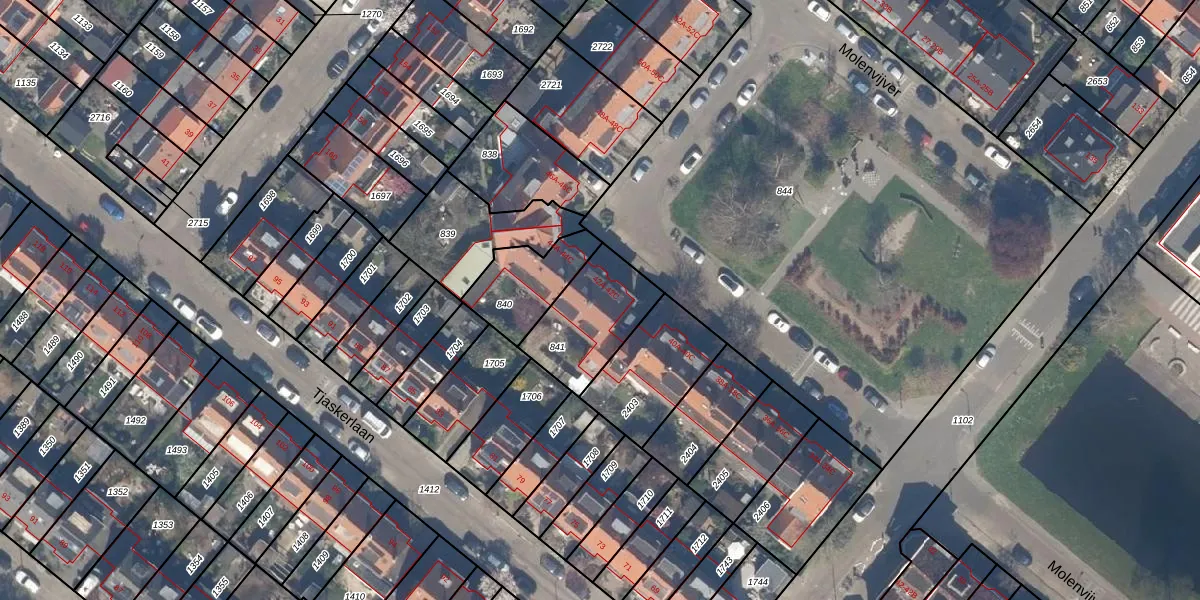 Molenvijver 42-A is gelegen op kadastraal perceel SBK01C841. Deze kadastrale aanduiding is uniek en wordt gebruikt door het Kadaster om eigendomsrechten en andere zakelijke rechten vast te leggen. Het perceel maakt onderdeel uit van de kadastrale gemeente Schiebroek.