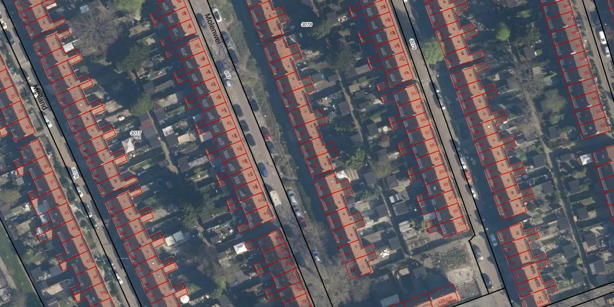 Molenwei 46 is gelegen op kadastraal perceel CLS00F3078. Deze kadastrale aanduiding is uniek en wordt gebruikt door het Kadaster om eigendomsrechten en andere zakelijke rechten vast te leggen. Het perceel maakt onderdeel uit van de kadastrale gemeente Charlois.