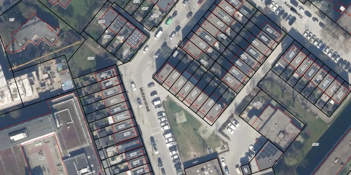 Gebruik de zoekbalk of klik op een perceel voor informatie over de adressen binnen dit perceel.