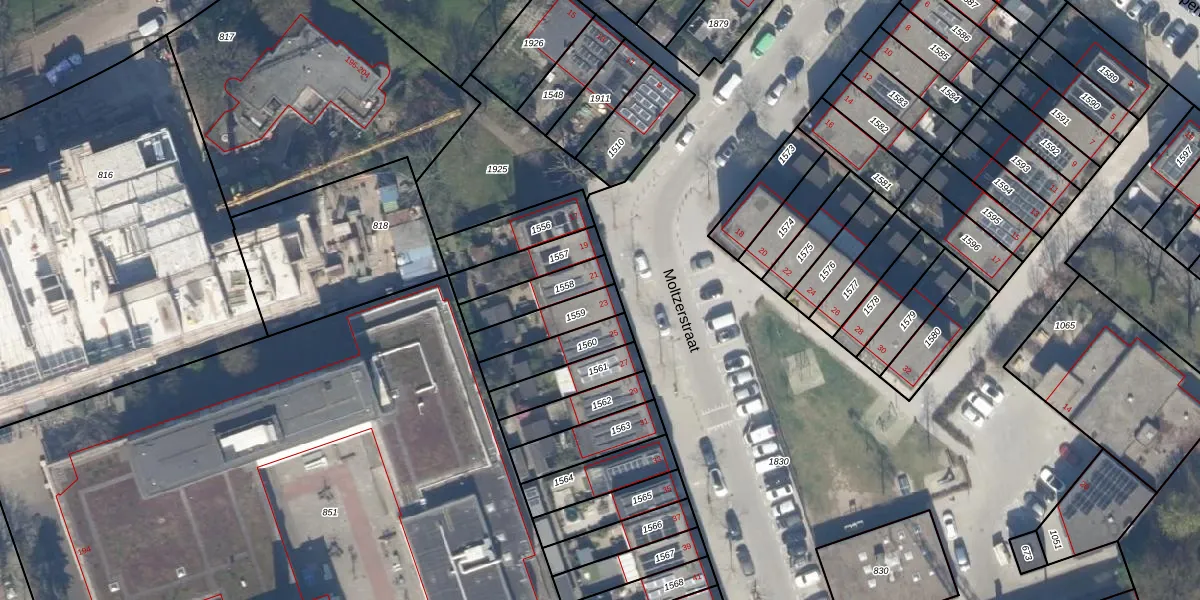 Gebruik de zoekbalk of klik op een perceel voor informatie over de adressen binnen dit perceel.
