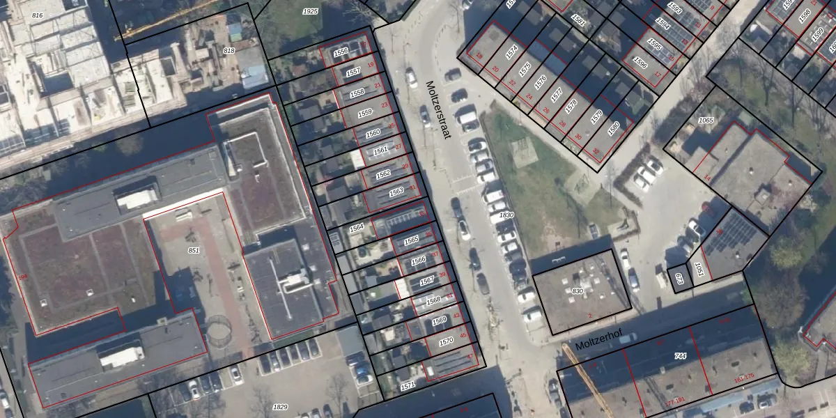 Het perceel waarop Moltzerstraat 33 staat heeft een oppervlakte van 156 m². Dit is een middelgroot perceel. De perceeloppervlakte wordt geregistreerd door het Kadaster. Gedetailleerde informatie over de maten van dit perceel kunt u vinden in het rapport Kadastrale kaart met maatvoering van Moltzerstraat 33.