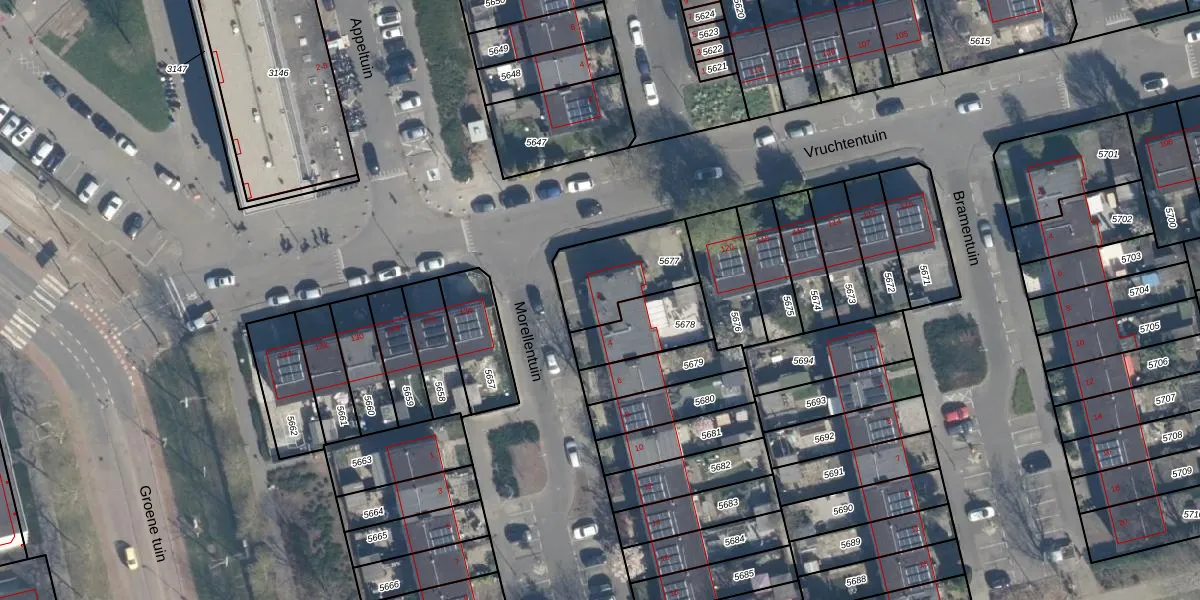 Gebruik de zoekbalk of klik op een perceel voor informatie over de adressen binnen dit perceel.