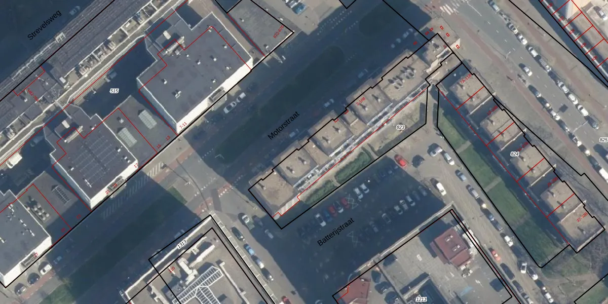 Motorstraat 90 is gelegen op kadastraal perceel CLS00I823. Deze kadastrale aanduiding is uniek en wordt gebruikt door het Kadaster om eigendomsrechten en andere zakelijke rechten vast te leggen. Het perceel maakt onderdeel uit van de kadastrale gemeente Charlois.
