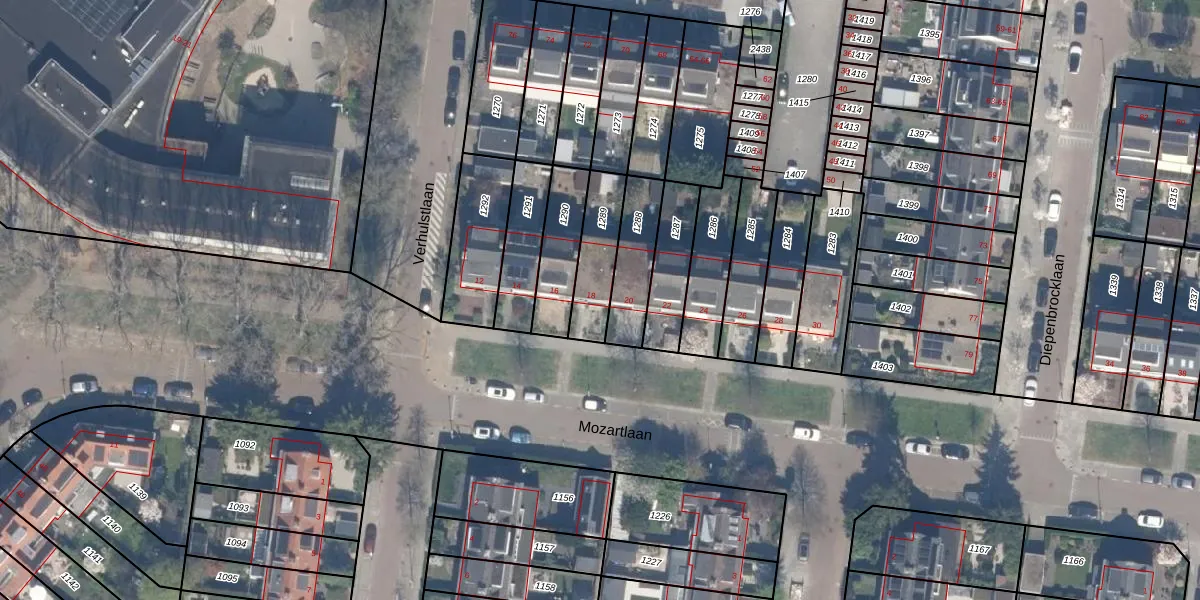 Het perceel waarop Mozartlaan 18 staat heeft een oppervlakte van 176 m². Dit is een middelgroot perceel. De perceeloppervlakte wordt geregistreerd door het Kadaster. Gedetailleerde informatie over de maten van dit perceel kunt u vinden in het rapport Kadastrale kaart met maatvoering van Mozartlaan 18.