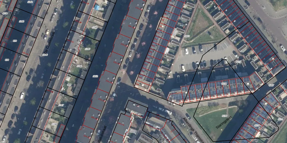 Het adres ligt op het perceel RTD10-Z-1613, dat zich in de kadastrale gemeente Rotterdam bevindt. De oppervlakte van het perceel is 3810 m². Dat is groter dan gemiddeld in Rotterdam, waar de gemiddelde perceeloppervlakte op 1601,7 m² ligt. De grootste perceeloppervlakte in de kadastrale gemeente is 30,3 ha. De kleinste oppervlakte bedraagt 0 m². Er zijn 27 adressen aanwezig op het perceel. De laatste wijziging in het de Basisregistratie Kadaster (BRK) was op 19-07-2022.