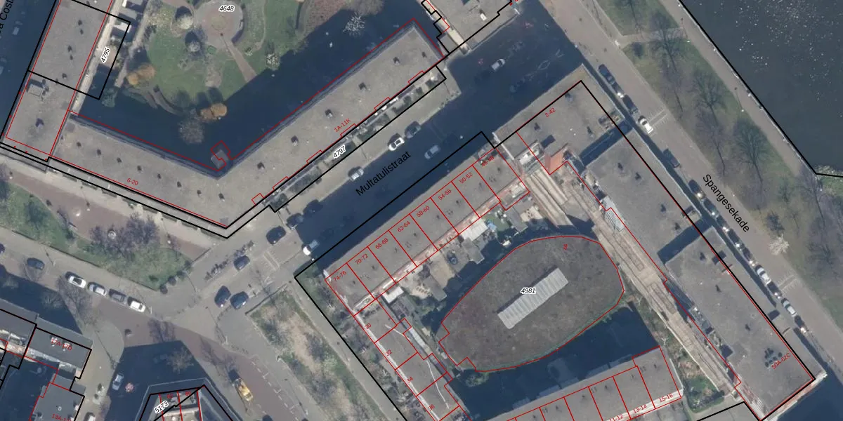 Het perceel waarop Multatulistraat 60 staat heeft een oppervlakte van 6710 m². Dit is een zeer groot perceel. De perceeloppervlakte wordt geregistreerd door het Kadaster. Gedetailleerde informatie over de maten van dit perceel kunt u vinden in het rapport Kadastrale kaart met maatvoering van Multatulistraat 60.