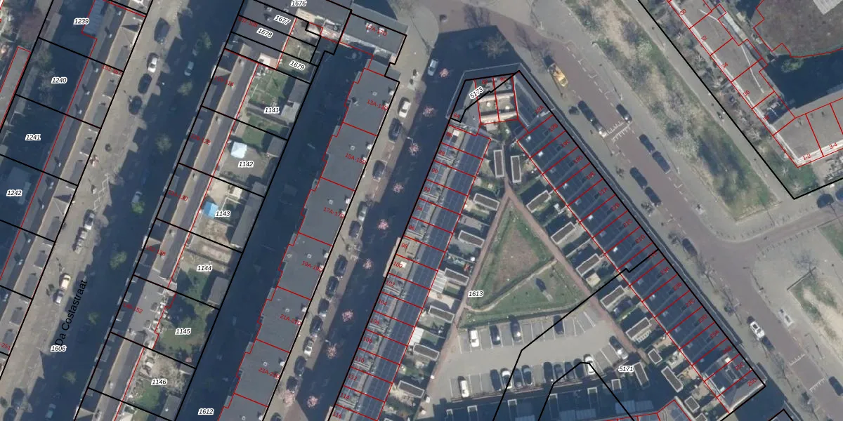 Het adres ligt op het perceel RTD10-Z-1613, dat zich in de kadastrale gemeente Rotterdam bevindt. De oppervlakte van het perceel is 3810 m². Dat is groter dan gemiddeld in Rotterdam, waar de gemiddelde perceeloppervlakte op 1601,7 m² ligt. De grootste perceeloppervlakte in de kadastrale gemeente is 30,3 ha. De kleinste oppervlakte bedraagt 0 m². Op het perceel liggen in totaal 27 adressen. De huidige grenzen van het perceel zijn digitaal in de Basisregistratie Kadaster (BRK) geregistreerd op 19-07-2022.