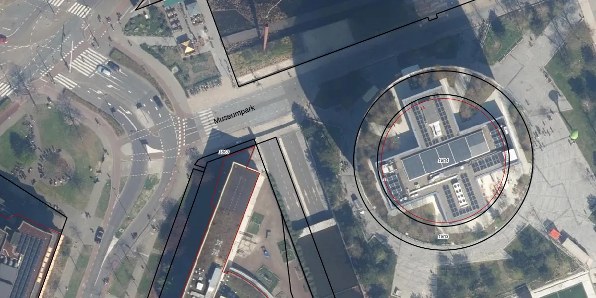 Het perceel waarop Museumpark 32 staat heeft een oppervlakte van 18,3 ha. Dit is een zeer groot perceel. De perceeloppervlakte wordt geregistreerd door het Kadaster. Gedetailleerde informatie over de maten van dit perceel kunt u vinden in het rapport Kadastrale kaart met maatvoering van Museumpark 32.