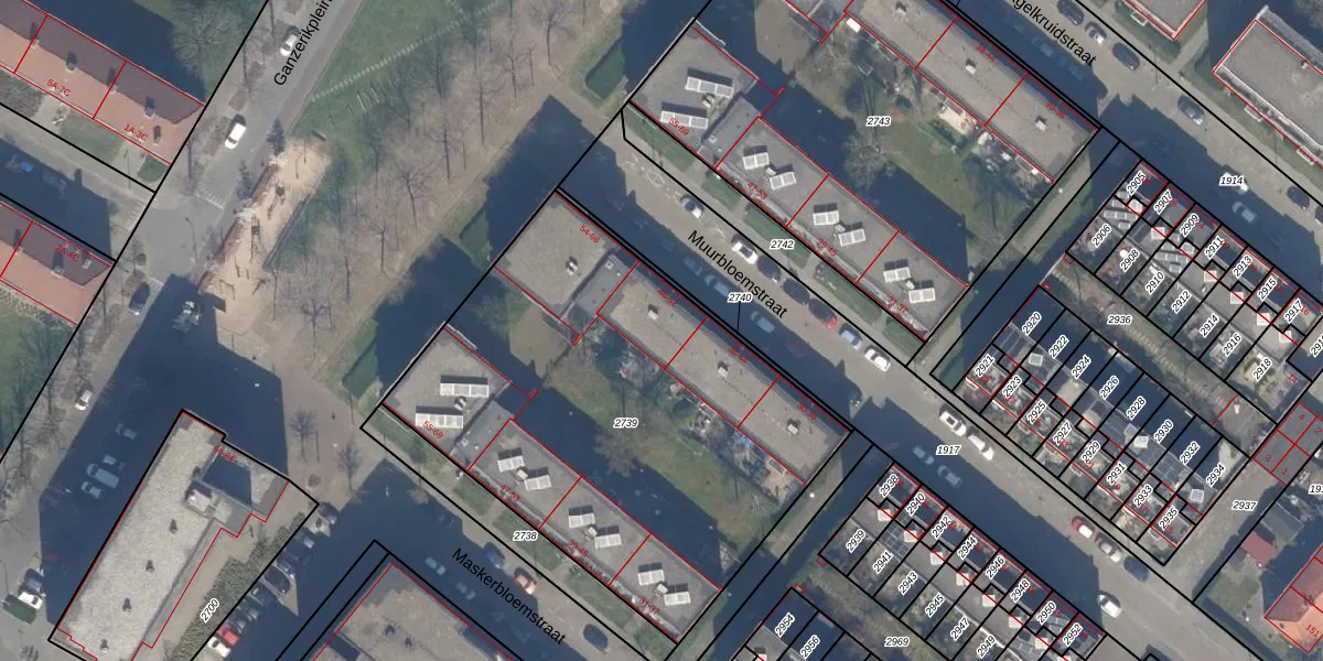 Het perceel waarop Muurbloemstraat 48 staat heeft een oppervlakte van 2410 m². Dit is een zeer groot perceel. De perceeloppervlakte wordt geregistreerd door het Kadaster. Gedetailleerde informatie over de maten van dit perceel kunt u vinden in het rapport Kadastrale kaart met maatvoering van Muurbloemstraat 48.