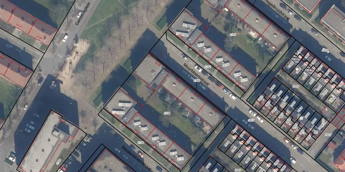 Het perceel waarop Muurbloemstraat 50 staat heeft een oppervlakte van 2410 m². Dit is een zeer groot perceel. De perceeloppervlakte wordt geregistreerd door het Kadaster. Gedetailleerde informatie over de maten van dit perceel kunt u vinden in het rapport Kadastrale kaart met maatvoering van Muurbloemstraat 50.