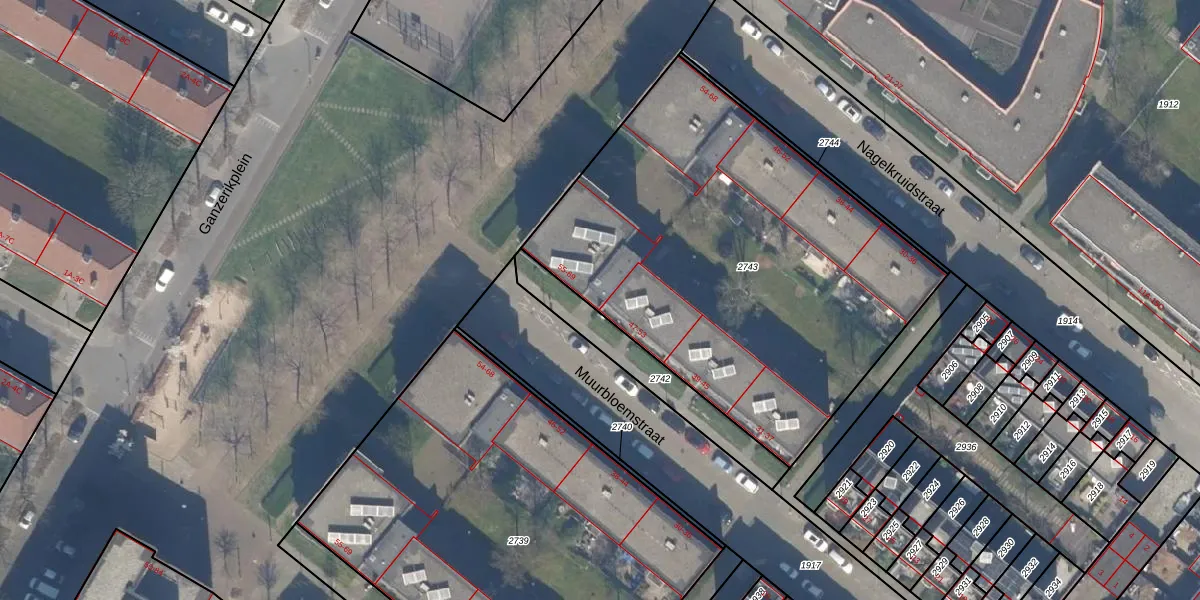 Het perceel waarop Muurbloemstraat 55 staat heeft een oppervlakte van 2410 m². Dit is een zeer groot perceel. De perceeloppervlakte wordt geregistreerd door het Kadaster. Gedetailleerde informatie over de maten van dit perceel kunt u vinden in het rapport Kadastrale kaart met maatvoering van Muurbloemstraat 55.