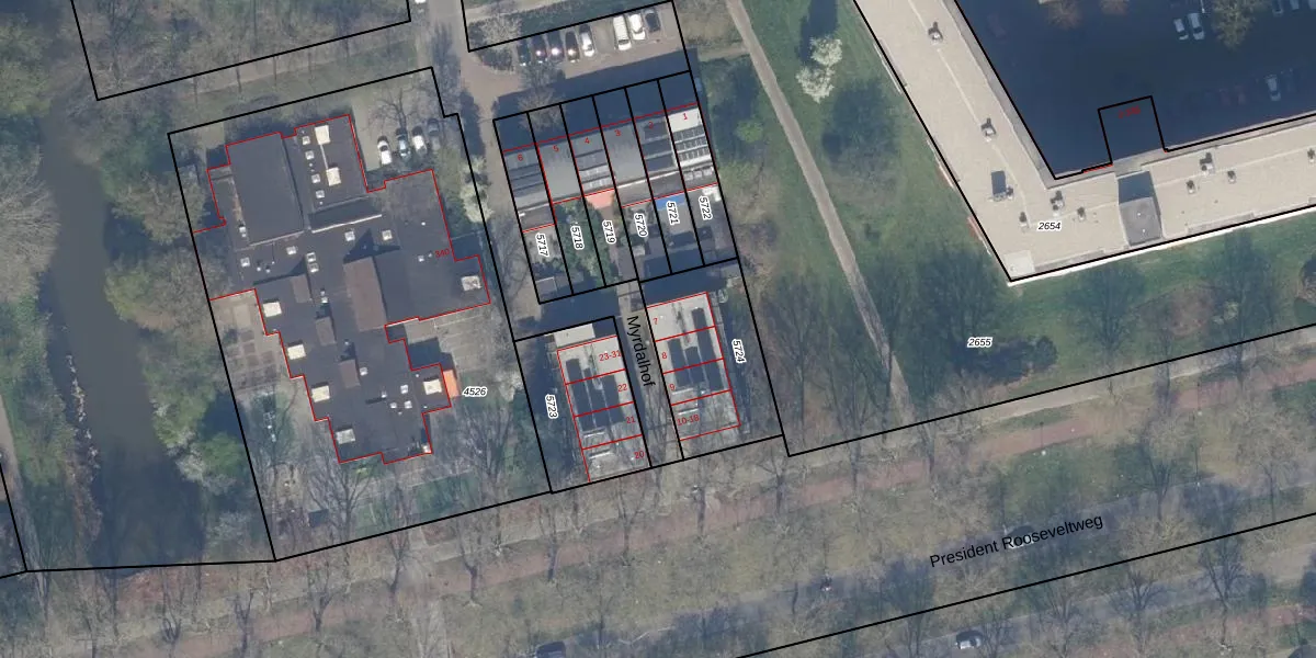 Het perceel waarop Myrdalhof 7 staat heeft een oppervlakte van 433 m². Dit is een groot perceel. De perceeloppervlakte wordt geregistreerd door het Kadaster. Gedetailleerde informatie over de maten van dit perceel kunt u vinden in het rapport Kadastrale kaart met maatvoering van Myrdalhof 7.