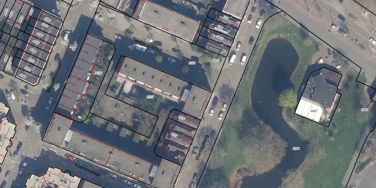 Het perceel waarop Naaldwijkstraat 10 staat heeft een oppervlakte van 2630 m². Dit is een zeer groot perceel. De perceeloppervlakte wordt geregistreerd door het Kadaster. Gedetailleerde informatie over de maten van dit perceel kunt u vinden in het rapport Kadastrale kaart met maatvoering van Naaldwijkstraat 10.