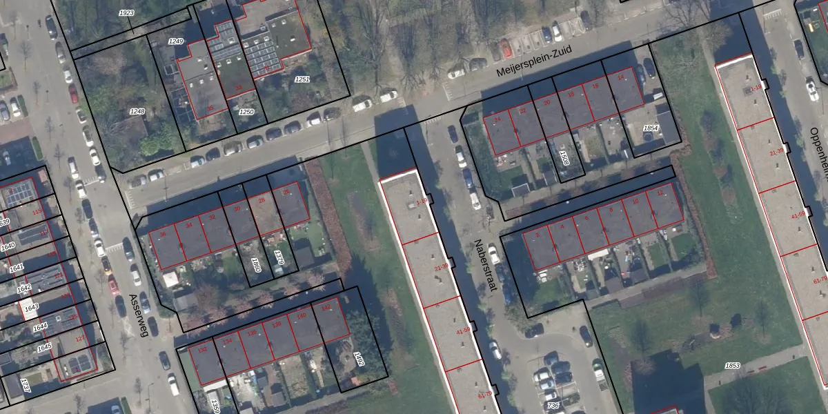 Het perceel waarop het adres ligt is SBK01-D-1908. De afkorting 'SBK01' staat voor kadastrale gemeente Schiebroek. De oppervlakte van het perceel is 9120 m². Dat is groter dan gemiddeld in Schiebroek, waar de gemiddelde perceeloppervlakte op 1440,41 m² ligt. Het kleinste perceel in de kadastrale gemeente is 0 m² groot. De grootste perceeloppervlakte is 36,7 ha. Op het perceel liggen in totaal 104 adressen. De huidige grenzen van het perceel zijn digitaal in de Basisregistratie Kadaster (BRK) geregistreerd op 02-05-2024.