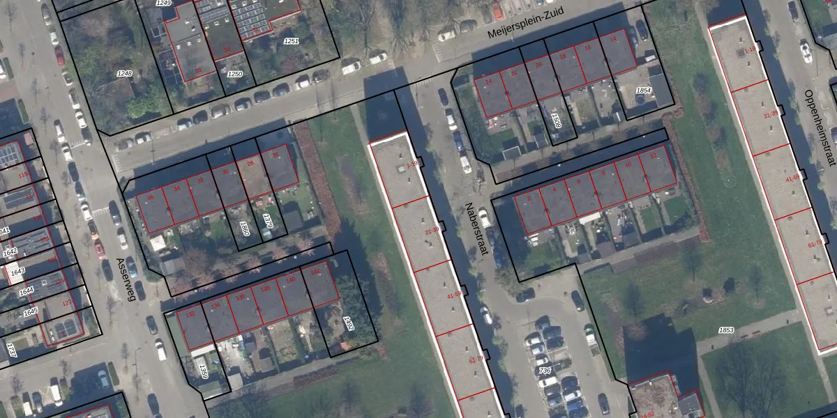 Het perceel waarop het adres ligt is SBK01-D-1908. De afkorting 'SBK01' staat voor kadastrale gemeente Schiebroek. De oppervlakte van het perceel is 9120 m². Dat is groter dan gemiddeld in Schiebroek, waar de gemiddelde perceeloppervlakte op 1441,77 m² ligt. Het kleinste perceel in de kadastrale gemeente is 0 m² groot. De grootste perceeloppervlakte is 36,7 ha. Er zijn 104 adressen aanwezig op het perceel. De laatste wijziging in het de Basisregistratie Kadaster (BRK) was op 02-05-2024.