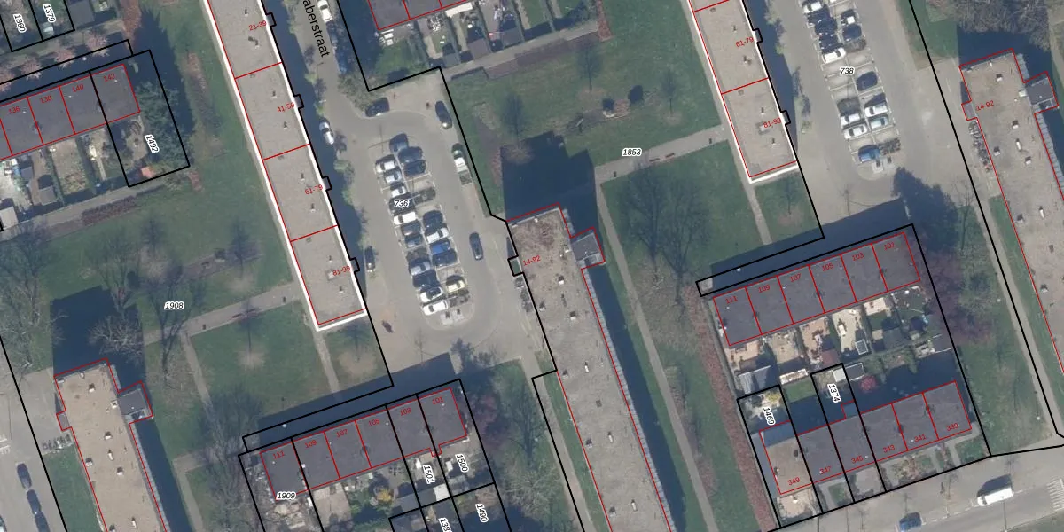 Het perceel waarop het adres ligt is SBK01-D-1853. De afkorting 'SBK01' staat voor kadastrale gemeente Schiebroek. De oppervlakte van het perceel is 9583 m². Dat is groter dan gemiddeld in Schiebroek, waar de gemiddelde perceeloppervlakte op 1441,77 m² ligt. Het kleinste perceel in de kadastrale gemeente is 0 m² groot. De grootste perceeloppervlakte is 36,7 ha. Er zijn 110 adressen aanwezig op het perceel. De huidige grenzen van het perceel zijn digitaal in de Basisregistratie Kadaster (BRK) geregistreerd op 09-04-2020.