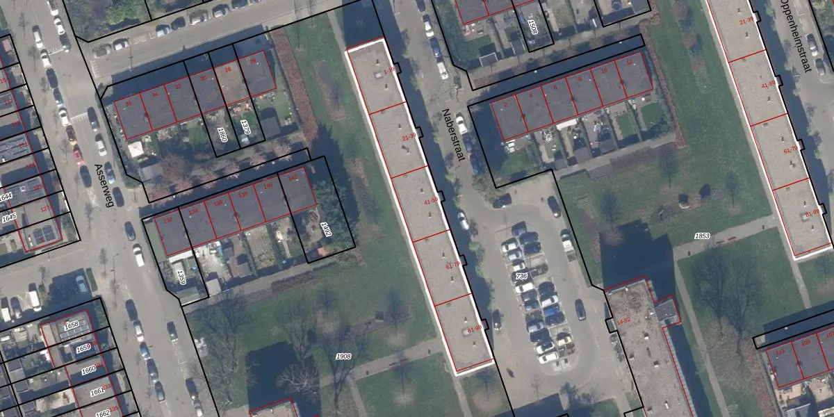 Het perceel waarop Naberstraat 55 staat heeft een oppervlakte van 9120 m². Dit is een zeer groot perceel. De perceeloppervlakte wordt geregistreerd door het Kadaster. Gedetailleerde informatie over de maten van dit perceel kunt u vinden in het rapport Kadastrale kaart met maatvoering van Naberstraat 55.