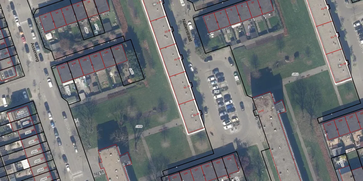 Het perceel waarop Naberstraat 75 staat heeft een oppervlakte van 9120 m². Dit is een zeer groot perceel. De perceeloppervlakte wordt geregistreerd door het Kadaster. Gedetailleerde informatie over de maten van dit perceel kunt u vinden in het rapport Kadastrale kaart met maatvoering van Naberstraat 75.