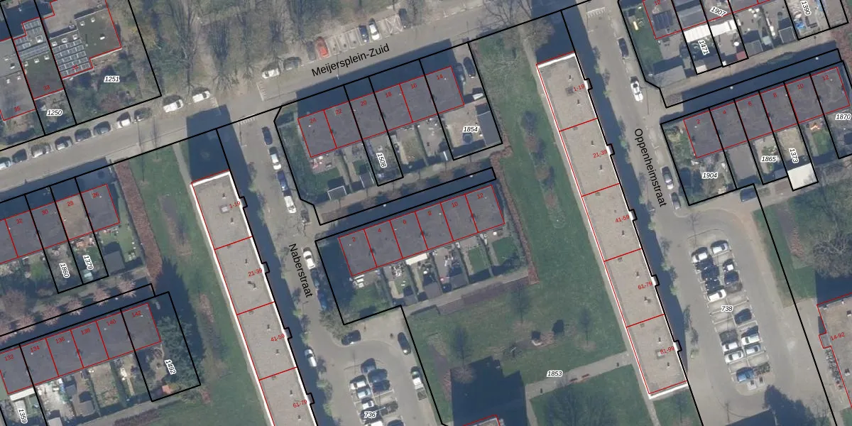 Het perceel waarop het adres ligt is SBK01-D-1853. De afkorting 'SBK01' staat voor kadastrale gemeente Schiebroek. De oppervlakte van het perceel is 9583 m². Dat is groter dan gemiddeld in Schiebroek, waar de gemiddelde perceeloppervlakte op 1441,77 m² ligt. Het kleinste perceel in de kadastrale gemeente is 0 m² groot. De grootste perceeloppervlakte is 36,7 ha. Op het perceel liggen in totaal 110 adressen. De huidige grenzen van het perceel zijn digitaal in de Basisregistratie Kadaster (BRK) geregistreerd op 09-04-2020.
