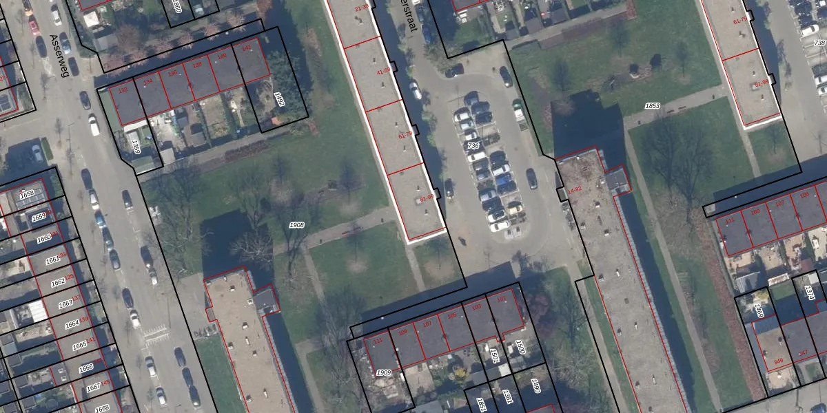 Het perceel waarop het adres ligt is SBK01-D-1908. De afkorting 'SBK01' staat voor kadastrale gemeente Schiebroek. De oppervlakte van het perceel is 9120 m². Dat is groter dan gemiddeld in Schiebroek, waar de gemiddelde perceeloppervlakte op 1441,77 m² ligt. De grootste perceeloppervlakte in de kadastrale gemeente is 36,7 ha. De kleinste oppervlakte bedraagt 0 m². Er zijn 104 adressen aanwezig op het perceel. In de Basisregistratie Kadaster (BRK) werden de grenzen van het perceel geregistreerd op 02-05-2024.