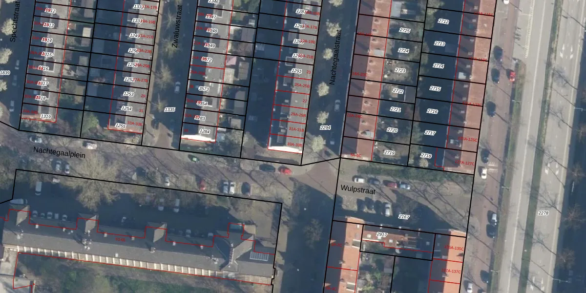 Nachtegaalstraat 33-A is gelegen op kadastraal perceel CLS00H1291. Deze kadastrale aanduiding is uniek en wordt gebruikt door het Kadaster om eigendomsrechten en andere zakelijke rechten vast te leggen. Het perceel maakt onderdeel uit van de kadastrale gemeente Charlois.