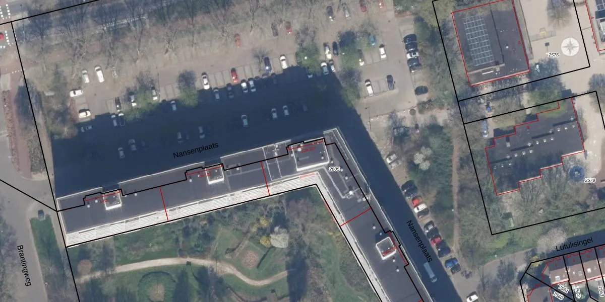 Het perceel waarop Nansenplaats 185 staat heeft een oppervlakte van 2302 m². Dit is een zeer groot perceel. De perceeloppervlakte wordt geregistreerd door het Kadaster. Gedetailleerde informatie over de maten van dit perceel kunt u vinden in het rapport Kadastrale kaart met maatvoering van Nansenplaats 185.