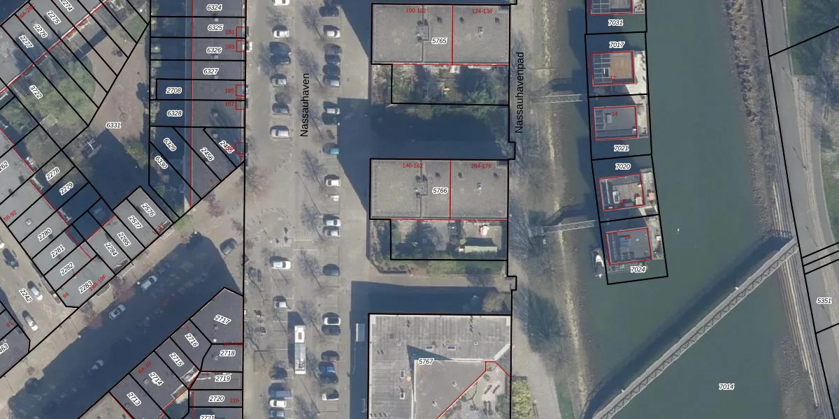 Het perceel waarop Nassauhaven 150 staat heeft een oppervlakte van 739 m². Dit is een groot perceel. De perceeloppervlakte wordt geregistreerd door het Kadaster. Gedetailleerde informatie over de maten van dit perceel kunt u vinden in het rapport Kadastrale kaart met maatvoering van Nassauhaven 150.