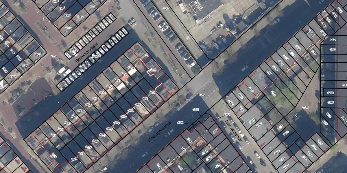 Het adres ligt op het perceel RTD05-Q-6859, dat zich in de kadastrale gemeente Rotterdam bevindt. Het perceel is kleiner dan gemiddeld in Rotterdam. Het perceel is 410 m² groot, terwijl het gemiddelde ligt op 1401,79 m². De grootste perceeloppervlakte in de kadastrale gemeente is 36,8 ha. De kleinste oppervlakte bedraagt 0 m². Er zijn 7 adressen aanwezig op het perceel. In de Basisregistratie Kadaster (BRK) werden de grenzen van het perceel geregistreerd op 14-04-2020.
