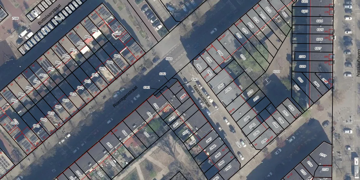Nassaustraat 55 is gelegen op kadastraal perceel RTD05Q6343. Deze kadastrale aanduiding is uniek en wordt gebruikt door het Kadaster om eigendomsrechten en andere zakelijke rechten vast te leggen. Het perceel maakt onderdeel uit van de kadastrale gemeente Rotterdam.