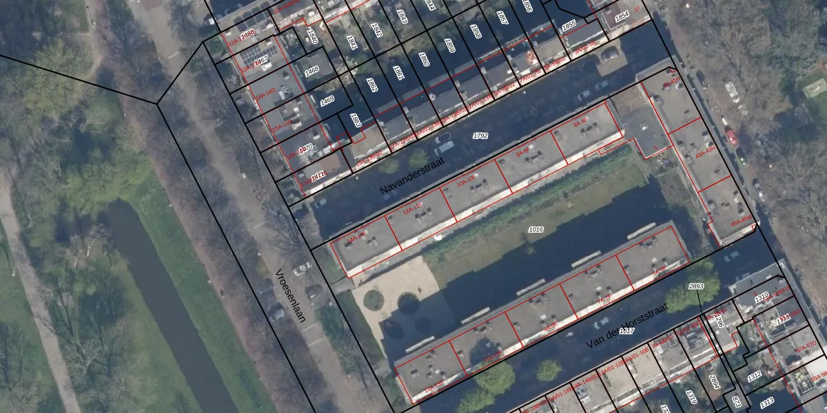 Navanderstraat 12-A is gelegen op kadastraal perceel RTD10AB1016. Deze kadastrale aanduiding is uniek en wordt gebruikt door het Kadaster om eigendomsrechten en andere zakelijke rechten vast te leggen. Het perceel maakt onderdeel uit van de kadastrale gemeente Rotterdam.