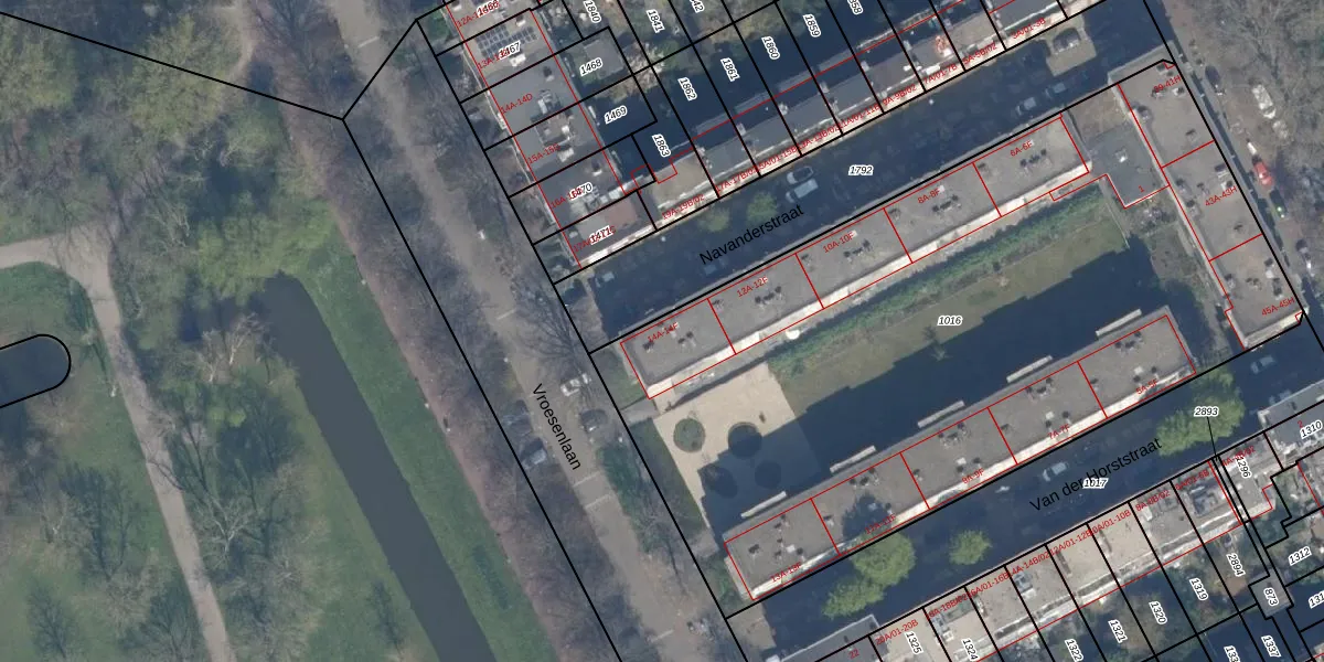 Het perceel waarop Navanderstraat 14-A staat heeft een oppervlakte van 4455 m². Dit is een zeer groot perceel. De perceeloppervlakte wordt geregistreerd door het Kadaster. Gedetailleerde informatie over de maten van dit perceel kunt u vinden in het rapport Kadastrale kaart met maatvoering van Navanderstraat 14-A.