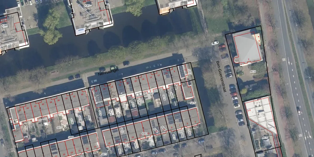 Gebruik de zoekbalk of klik op een perceel voor informatie over de adressen binnen dit perceel.