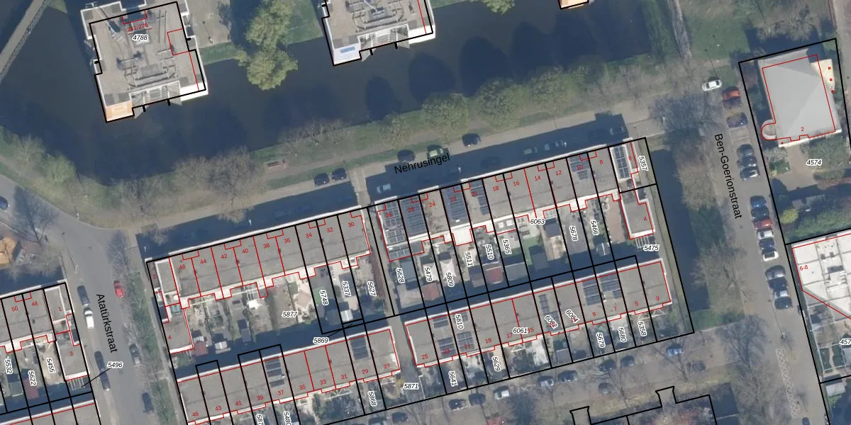 Gebruik de zoekbalk of klik op een perceel voor informatie over de adressen binnen dit perceel.