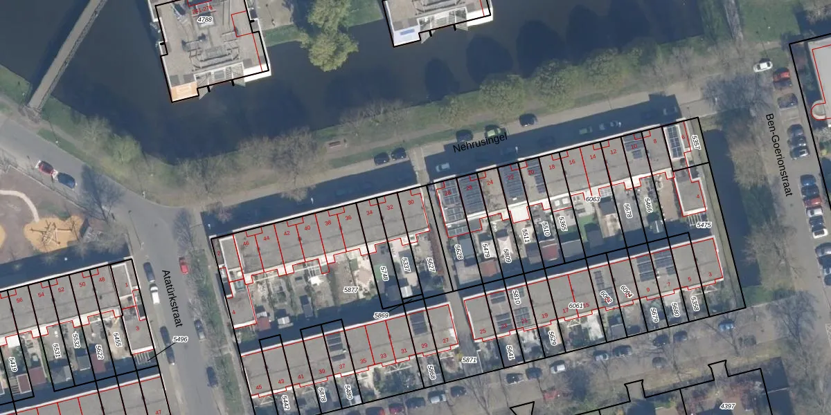 Gebruik de zoekbalk of klik op een perceel voor informatie over de adressen binnen dit perceel.