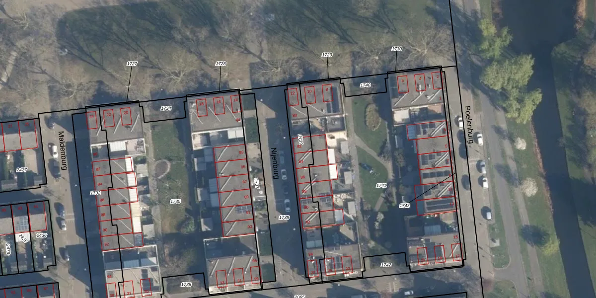 Het perceel waarop Nijenburg 82 staat heeft een oppervlakte van 412 m². Dit is een groot perceel. De perceeloppervlakte wordt geregistreerd door het Kadaster. Gedetailleerde informatie over de maten van dit perceel kunt u vinden in het rapport Kadastrale kaart met maatvoering van Nijenburg 82.
