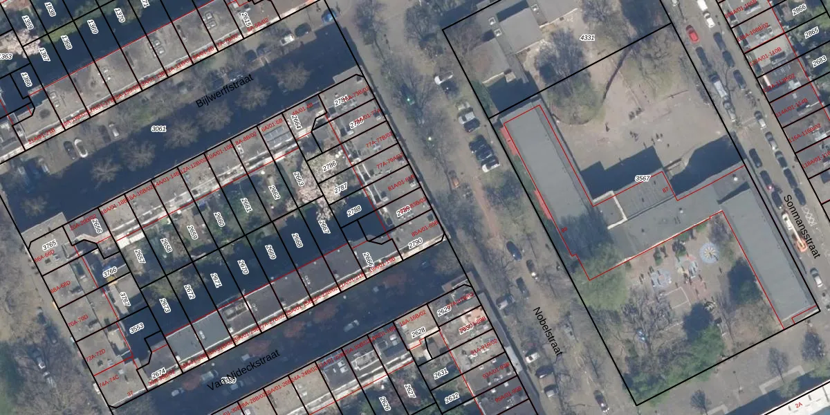 Het perceel waarop Nobelstraat 83-A staat heeft een oppervlakte van 102 m². Dit is een middelgroot perceel. De perceeloppervlakte wordt geregistreerd door het Kadaster. Gedetailleerde informatie over de maten van dit perceel kunt u vinden in het rapport Kadastrale kaart met maatvoering van Nobelstraat 83-A.