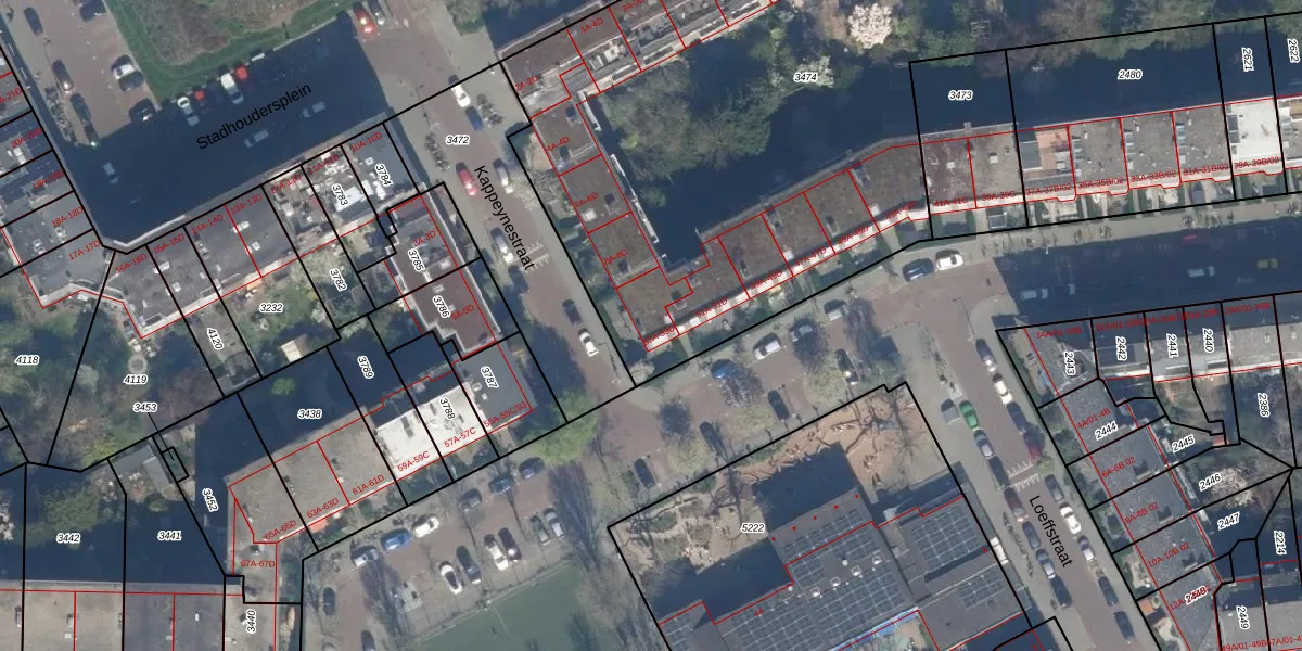 Het perceel waarop Nolensstraat 53-B staat heeft een oppervlakte van 6054 m². Dit is een zeer groot perceel. De perceeloppervlakte wordt geregistreerd door het Kadaster. Gedetailleerde informatie over de maten van dit perceel kunt u vinden in het rapport Kadastrale kaart met maatvoering van Nolensstraat 53-B.