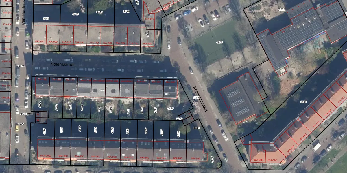 Het perceel waarop Nolensstraat 58-A staat heeft een oppervlakte van 299 m². Dit is een middelgroot perceel. De perceeloppervlakte wordt geregistreerd door het Kadaster. Gedetailleerde informatie over de maten van dit perceel kunt u vinden in het rapport Kadastrale kaart met maatvoering van Nolensstraat 58-A.